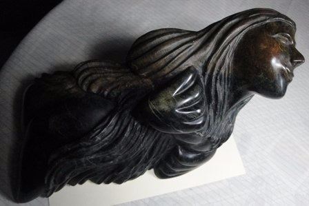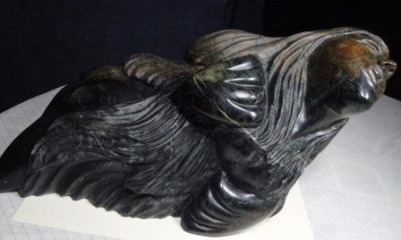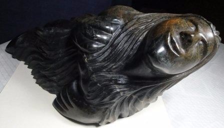 Soapstone carving inuit goddess sedna,soap stone 14 inch long...such a masterpiece; very detailed hand carved by shytoo muchpah.....msrp 3900
