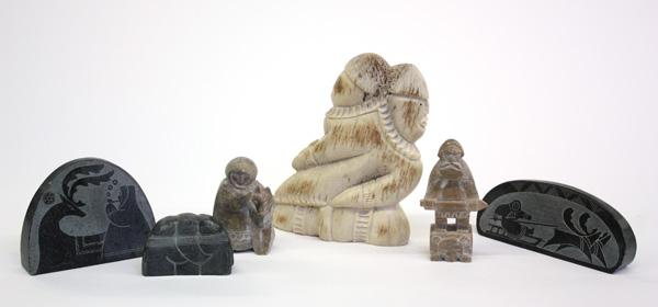 (lot of 6) Inuit carvings, including a bone sculpture, tallest height: 6''