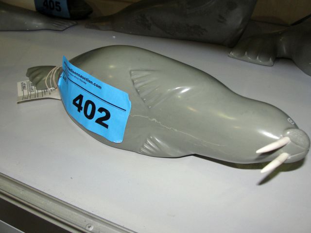 Inuit grey ardulite stone carving - walrus, signed