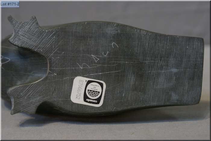 Inuit soapstone carving of a duck signed by artist Silatek Meeko