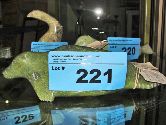 Inuit soapstone carving - seal, signed by artist