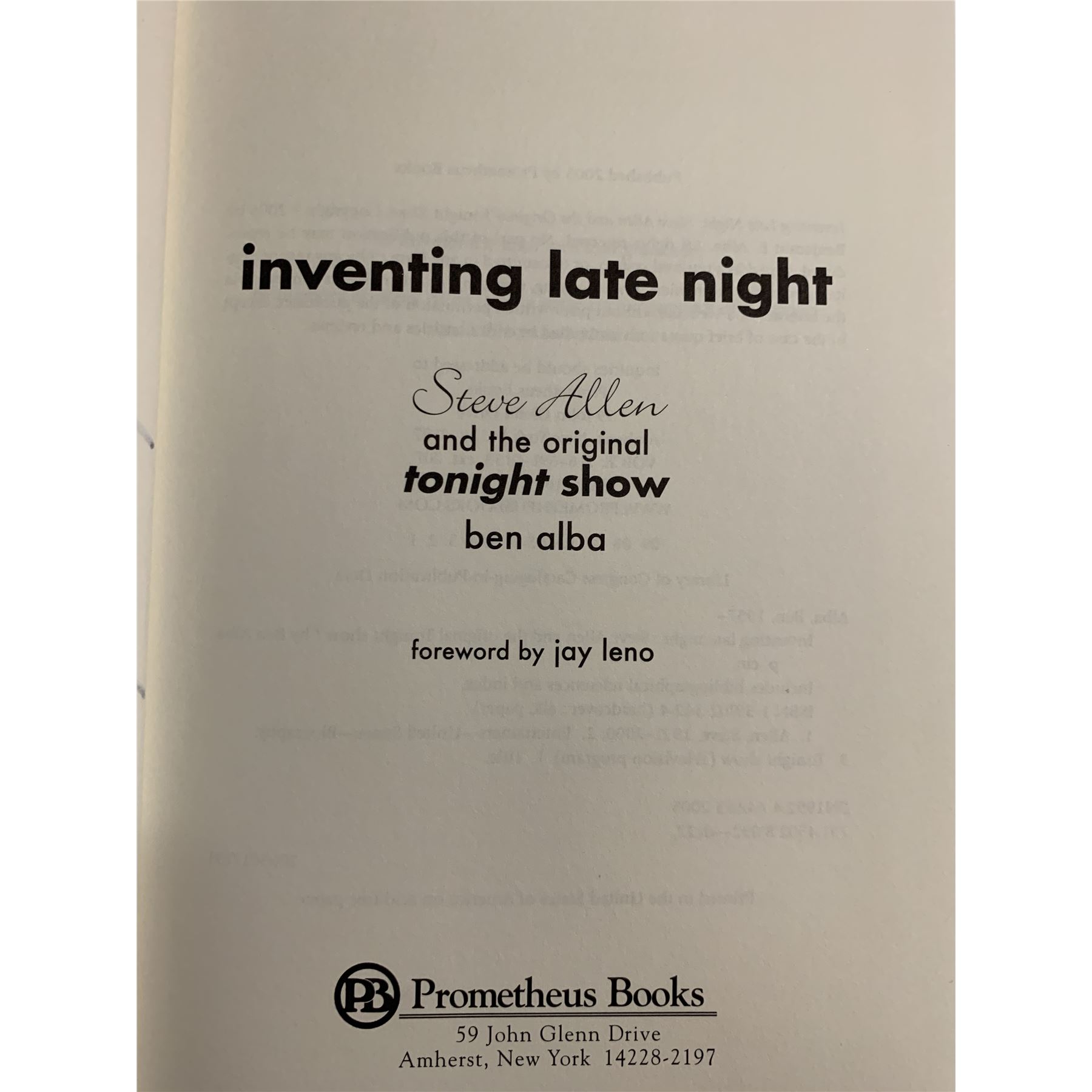 Inventing Late Night: Steve Allen and the Original Tonight Show signed book autographed by author Ben Alba and Jayne Meadows Allen