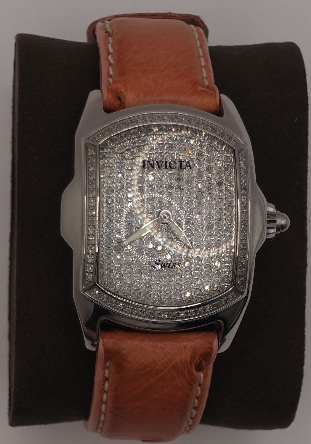 Movement: Swiss Quartz 34mm. Genuine Leather/Ostrich pattern. Water Resistance: (10 ATM) - 100 meters - 330 feet - needs battery.& nbsp;