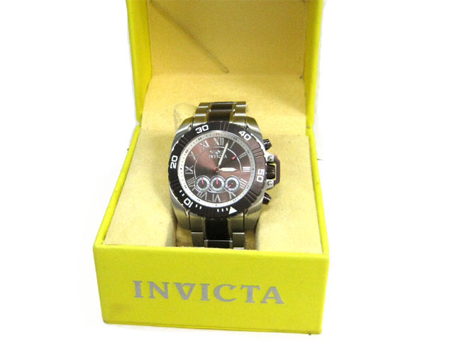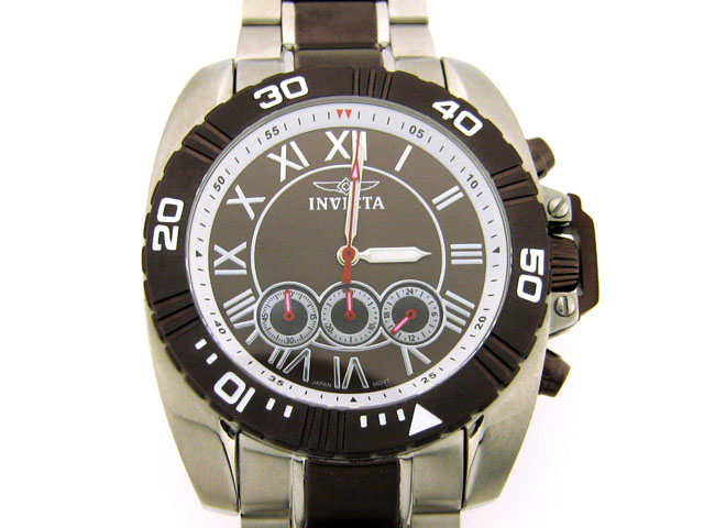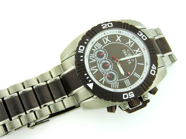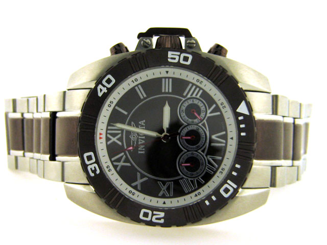 The Invicta Men's S1 Collection Rally Chronograph Watch with the following features: brown-ionic-plating-and-stainless-steel case; unidirectional brown-ionic-plating-stainless-steel bezel; two-tone-ionic-plating-stainless-steel link bracelet with a secur