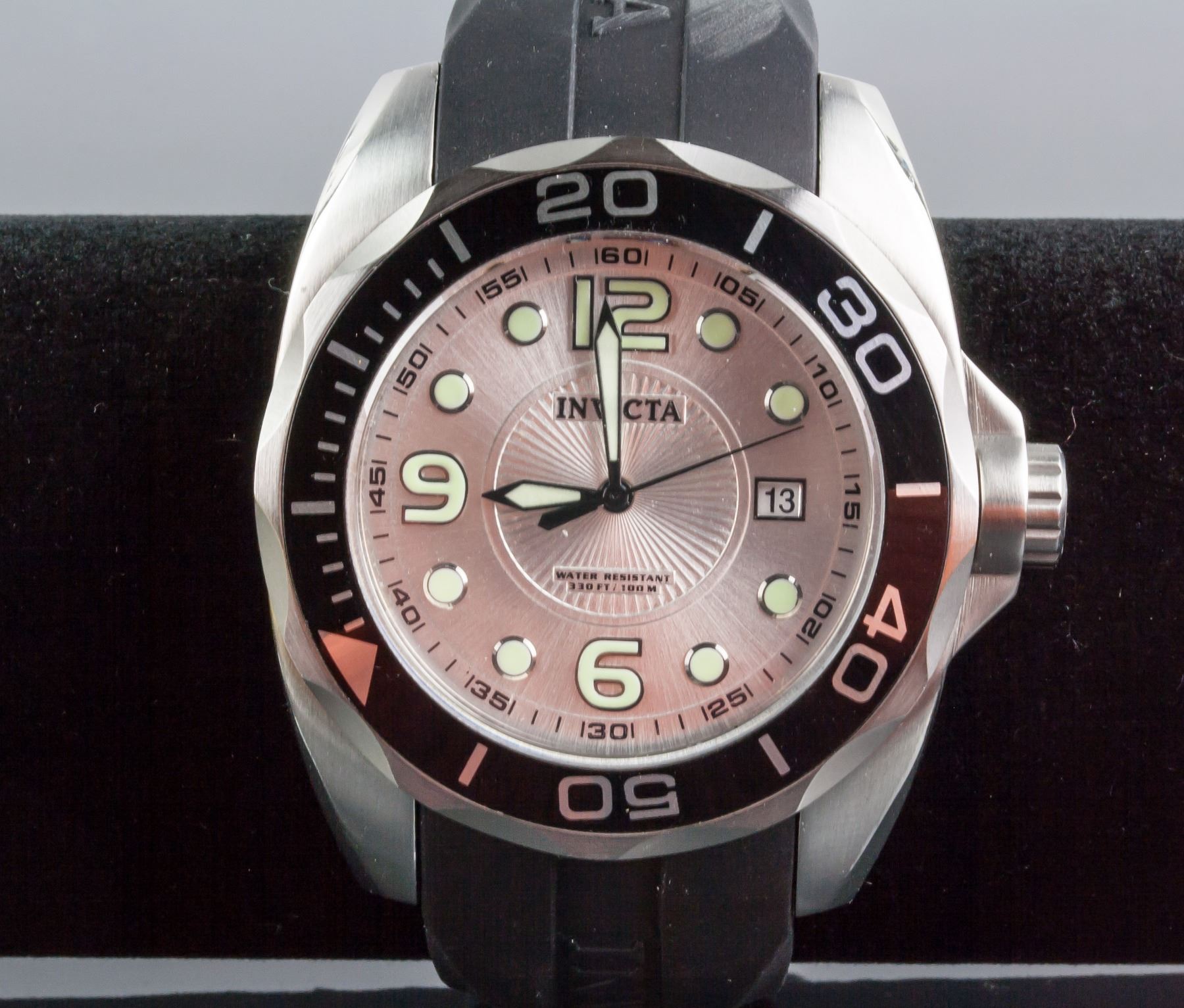Invicta Pro diver Swiss movement stainless steel watch; water resistant 100 meters; model number 0424; Band diameter: 7 cm, Dial diameter: 5 cm, 124 grams