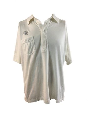 Invincible (2006) - White cotton Dallas Cowboys short sleeve buttoned collared shirt, small silver Cowboys football helmet logo on front (xl). From Debbie Reynolds archives collection.
