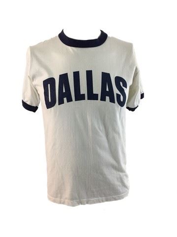 Invincible (2006) - L White Dallas Cowboys cotton T-Shirt, blue collar, Dallas written on the front in blue. This incredible memorabilia comes direct from the Debbie Reynold's archive collection. Debbie Reynolds and Todd Fischer purchased and acquired this amazing collection decades ago from the MGM auction, 20th Century Props auctions, Christie's auctions, Planet Hollywood and numerous additional auctions. Debbie Reynolds then opened Hollywood Central Props where many of these props and costumes were used in the making of feature films and television shows. This auction also marks the beginning of a long-term collaboration with The Debbie Reynolds’ Archives and her son Todd Fisher with a collection of props, costumes and photos including an ensemble from CHOCOLAT, ROMEO AND JULIET, MISSISSIPPI, V FOR VENDETTA, THE PATRIOT, THE LAST SAMURAI and more!