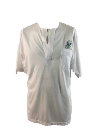 Invincible (2006) - L White cotton Dallas Cowboys short sleeve buttoned collared shirt, collar has been removed, small silver Cowboys football helmet with blue star on front. This incredible memorabilia comes direct from the Debbie Reynold's archive collection. Debbie Reynolds and Todd Fischer purchased and acquired this amazing collection decades ago from the MGM auction, 20th Century Props auctions, Christie's auctions, Planet Hollywood and numerous additional auctions. Debbie Reynolds then opened Hollywood Central Props where many of these props and costumes were used in the making of feature films and television shows. This auction also marks the beginning of a long-term collaboration with The Debbie Reynolds’ Archives and her son Todd Fisher with a collection of props, costumes and photos including an ensemble from CHOCOLAT, ROMEO AND JULIET, MISSISSIPPI, V FOR VENDETTA, THE PATRIOT, THE LAST SAMURAI and more!