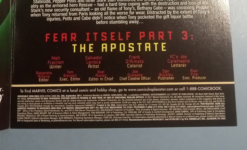 Invincible Iron Man #506 Signed Matt Fraction Fear Itself Marvel 2011
