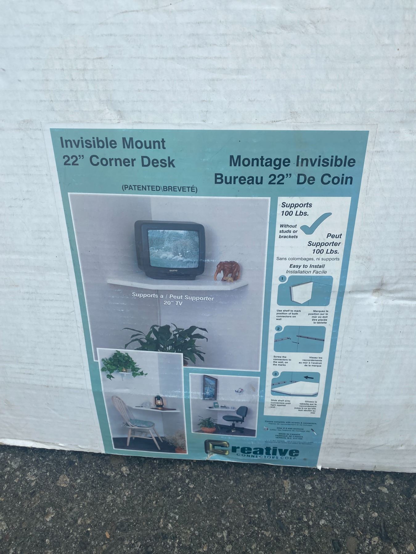 Invisible mount corner desk or shelf
