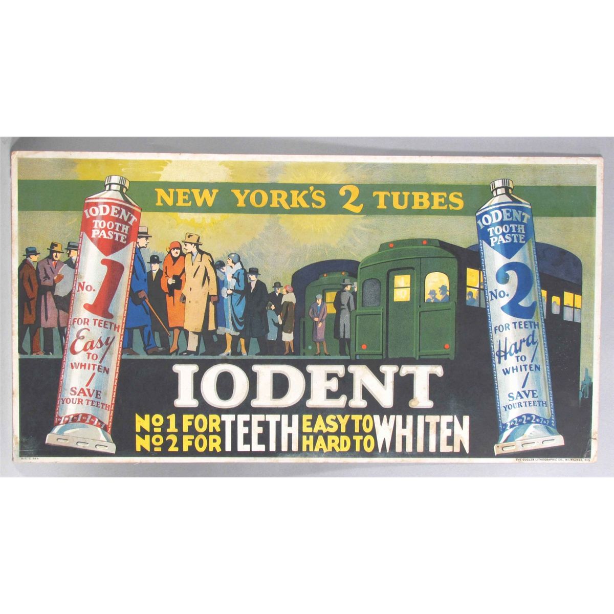 Iodent Tooth Paste Trolley Car Sign. Some discoloration otherwise very good condition. 21 X 11 inches. Start Price $40