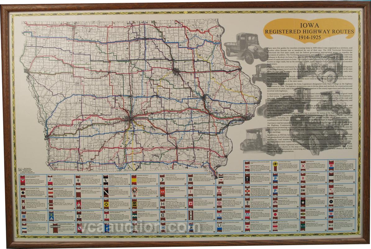 Iowa Map Of Registered Highway Routes 1914-1925 Framed - 38" x 26"