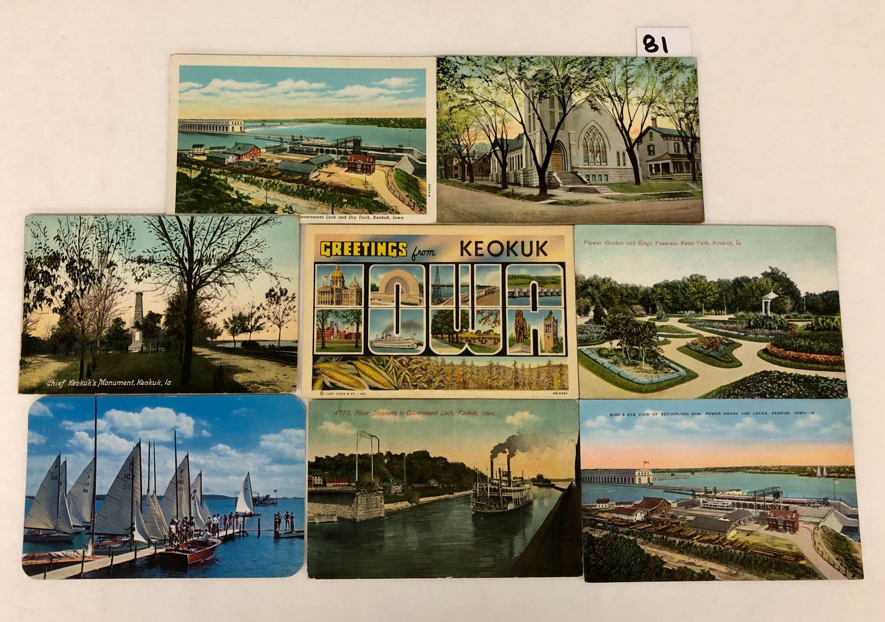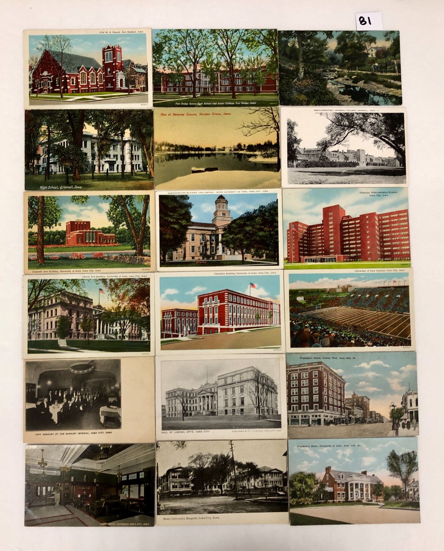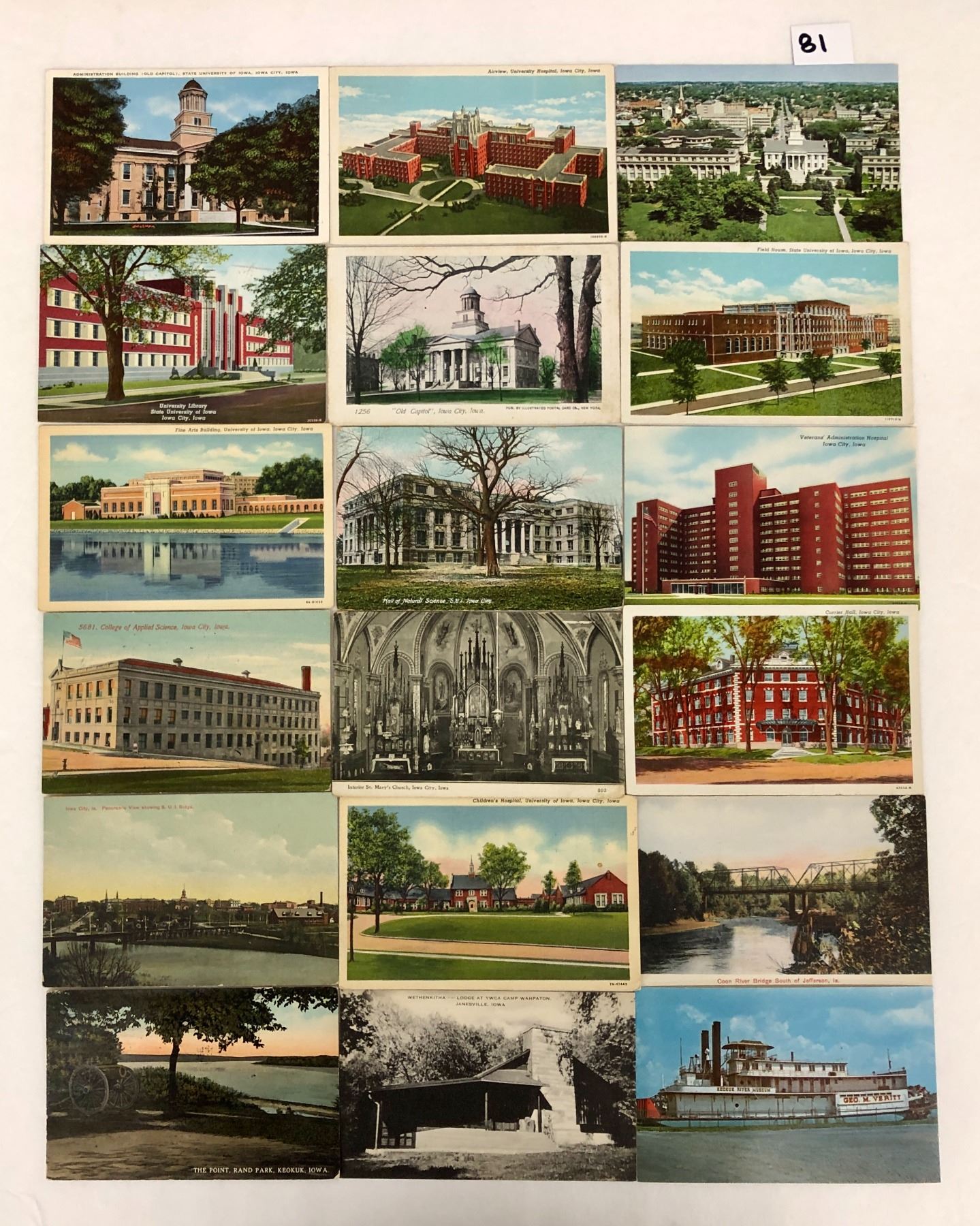 Approx. 500 Iowa postcards. Early to standard size chrome, mostly pre chrome. Sorted into over 12 towns.