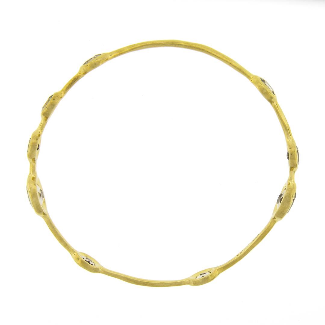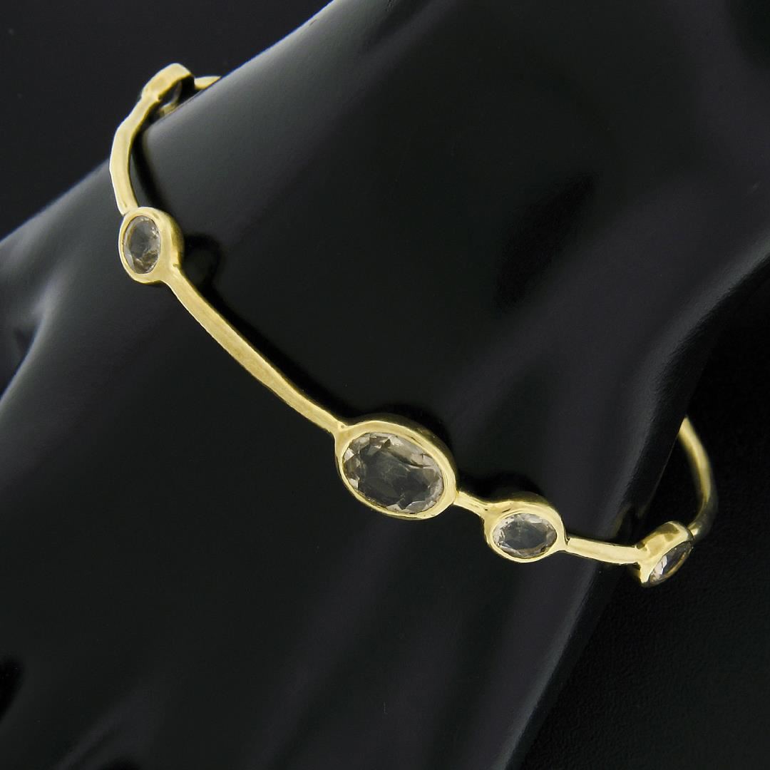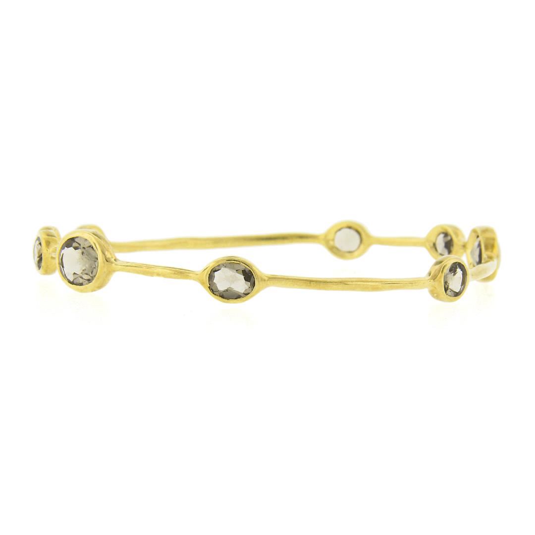 A solid 18k yellow gold bangle bracelet by Ippolita, featuring 9 oval cut natural smoky quartz (4.93ctw). It weighs a total of 13.13 grams, measures 8.6mm wide, and measures 7.5 inches in length.