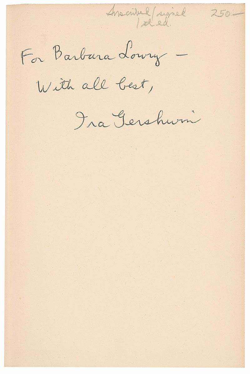 Three items: a first edition hardcover book entitled Lyrics on Several Occasions, signed and inscribed on the first free end page by Ira Gershwin; a souvenir book from “Irving Berlin’s All Soldier Show ‘This Is the Army,’” signed inside vertically in fountain pen on Berlin’s full page photo; and a vintage matte-finish 2.25 x 3.25 candid photo of Berlin among a group of American soldiers, signed in fountain pen by Berlin. In overall fine condition.