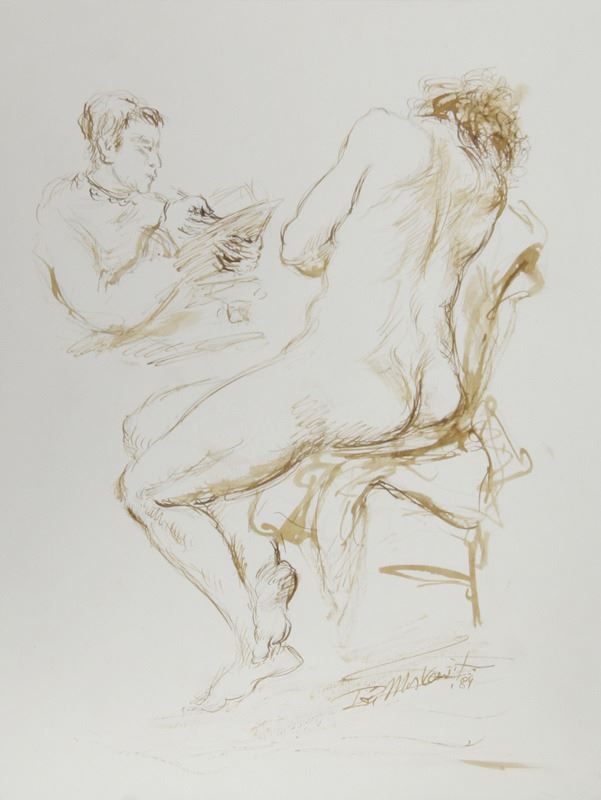 Ira Moskowitz, Artist and Nude Model - VII, Ink Drawing
