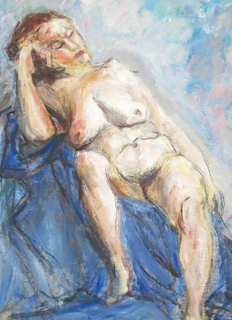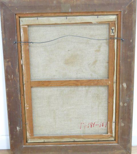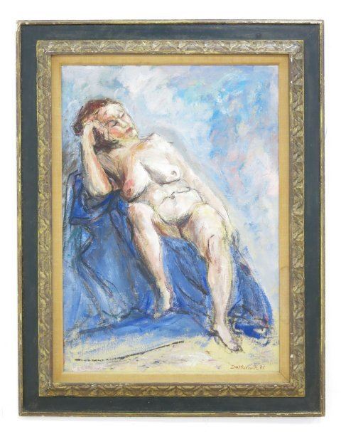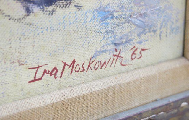 Oil on canvas. Framed. Signed & dated 1965 lower right. Ira Moskowitz, Polish American (1912-2001). Approx. 25" H x 17" W unframed, 33" H x 25" W framed.