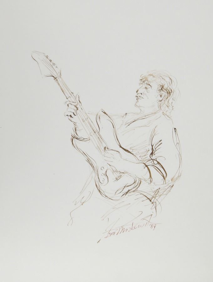 Ira Moskowitz, Electric Guitarist - III, Ink Drawing
