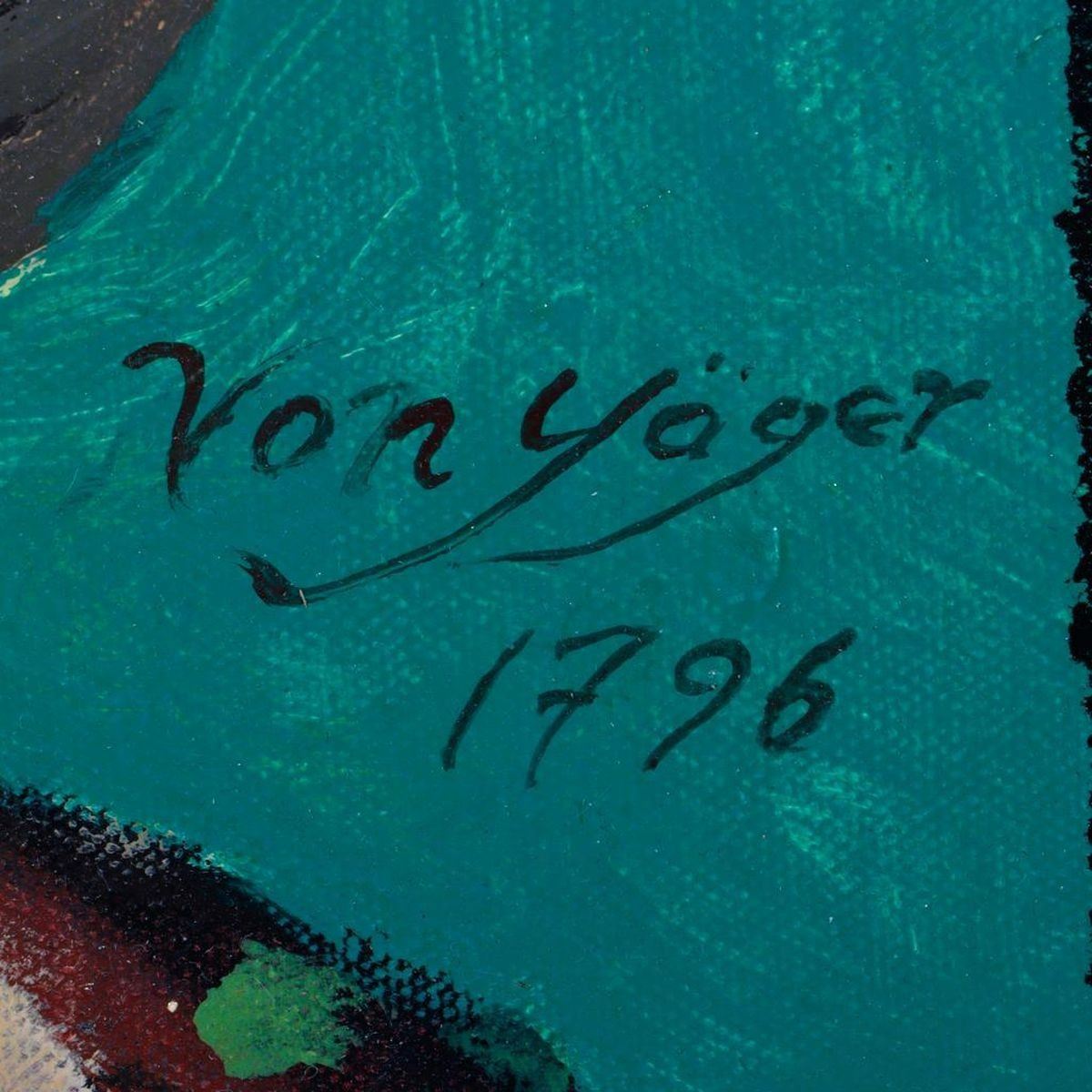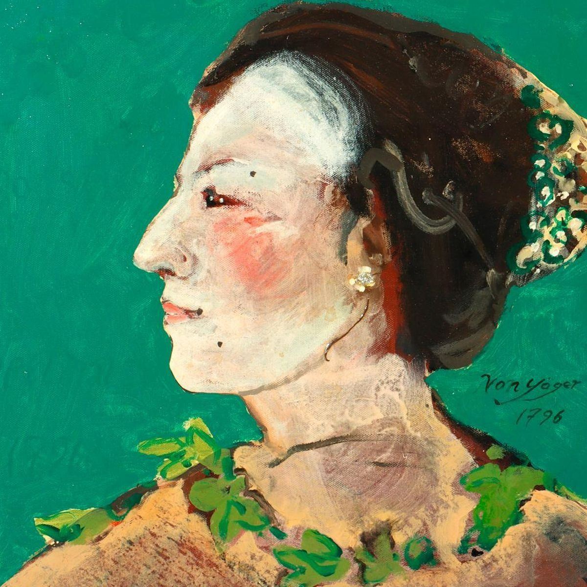Artist: Ira Yeager (1938-2022). Title/Subject: "1796", profile portrait of a lady. Size: 16in x 16in. Year Created: 1998. Signature: Signed lower center right "Von Yager" (alternate Ira Yeager signature). Medium/Ground: Oil and acrylic on canvas. Condition: Good. Condition Report: All lots are sold as is and where is. Turner Auctions + Appraisals, LLC provides condition reports upon request to aid in your bidding decision. No statement regarding age, condition, kind, value, or quality of a lot, whether made orally at the auction or at any other time, or in writing in this catalog or elsewhere, shall be construed to be an express or implied warranty, representation, or assumption of liability. All sales are final, Turner Auctions + Appraisals, LLC does not give refunds based on condition. Turner Auctions + Appraisals, LLC does not perform any shipping or packing services. We do have a list of suggested shippers who gladly provide quotes prior to your bidding. Please visit our webpage for a list of recommended shippers.