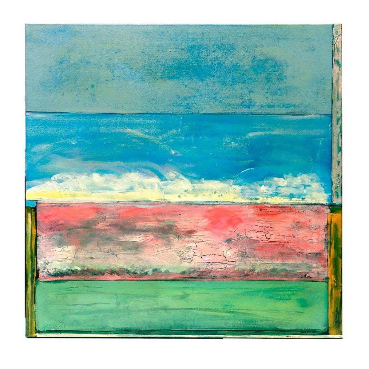 Artist: Ira Yeager (1938-2022). Title/Subject: Abstract seascape. Size: 42in x 42in. Year Created: 20th/21st century. Signature: Signed lower left. Medium/Ground: Oil and Acrylic on canvas. Condition: Good. Condition Report: All lots are sold as is and where is. Turner Auctions + Appraisals, LLC provides condition reports upon request to aid in your bidding decision. No statement regarding age, condition, kind, value, or quality of a lot, whether made orally at the auction or at any other time, or in writing in this catalog or elsewhere, shall be construed to be an express or implied warranty, representation, or assumption of liability. All sales are final, Turner Auctions + Appraisals, LLC does not give refunds based on condition. Turner Auctions + Appraisals, LLC does not perform any shipping or packing services. We do have a list of suggested shippers who gladly provide quotes prior to your bidding. Please visit our webpage for a list of recommended shippers.