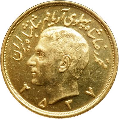 Iran. 10 Pahlavi, MS2537 (1978). Fr-98a; KM-1213. Mohammed Riza Pahlevi, 1942-1979. Head left. Reverse: Lion. NGC graded MS-62.