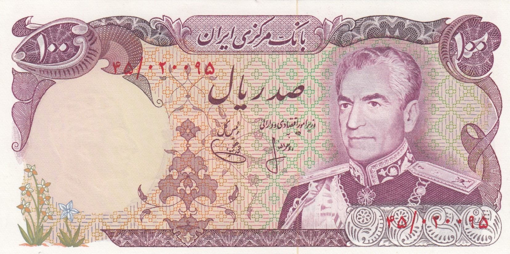 Iran, 100 Rials, 1974-1979, UNC, p102abr/Shah Pahlavi portrait