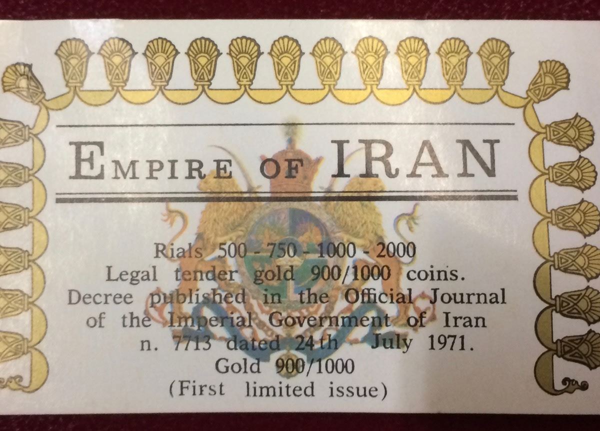 Iran: 1971 2000 Rials Gold .900 Proof Coin, First Limited Issue 26,18 gr