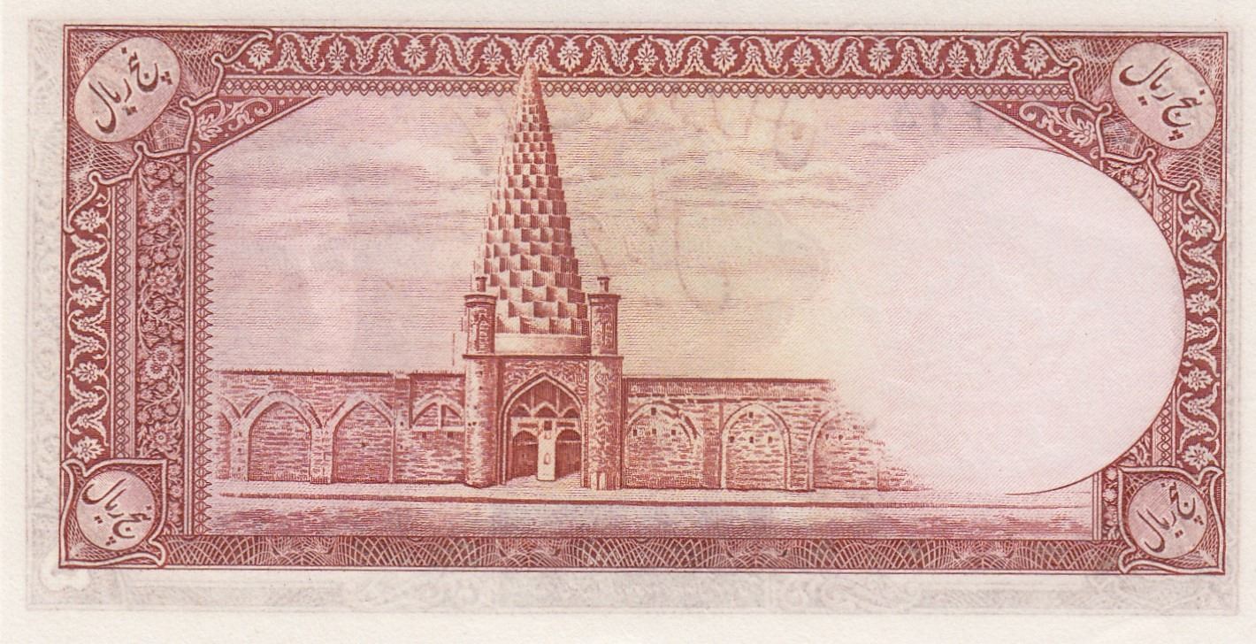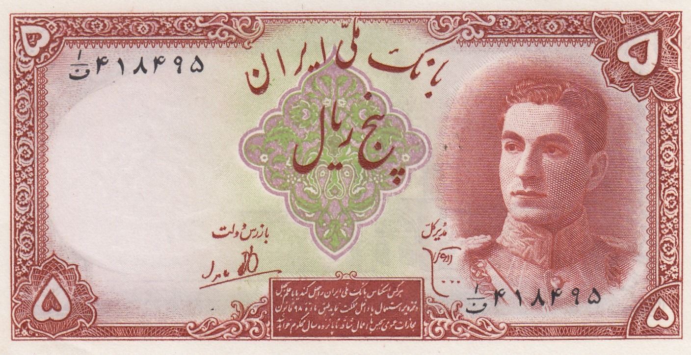 Iran, 5 Rials, 1944, UNC, p39br/Shah Pahlavi portrait