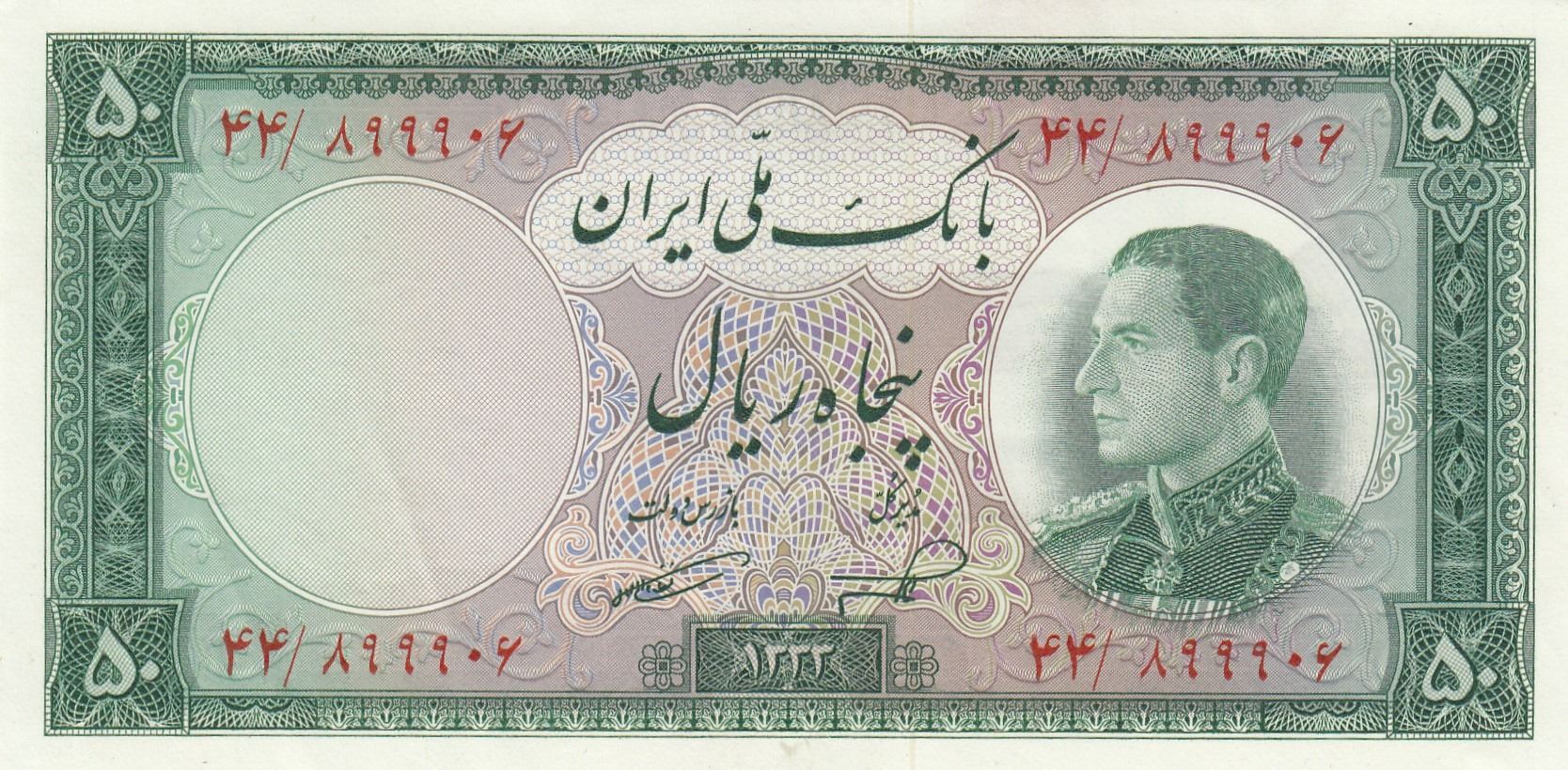 Iran, 50 Rials, 1954, UNC (-), p66br/it has a trail of bundle crush