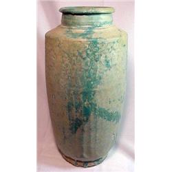 Iran, Seljuk, Kashan, 12th - 13th Century. A very large turquoise glazed vase. Intact with some glaze degradation throughout. Intact and rare of this size. H: 40cm. $1750 - $2500