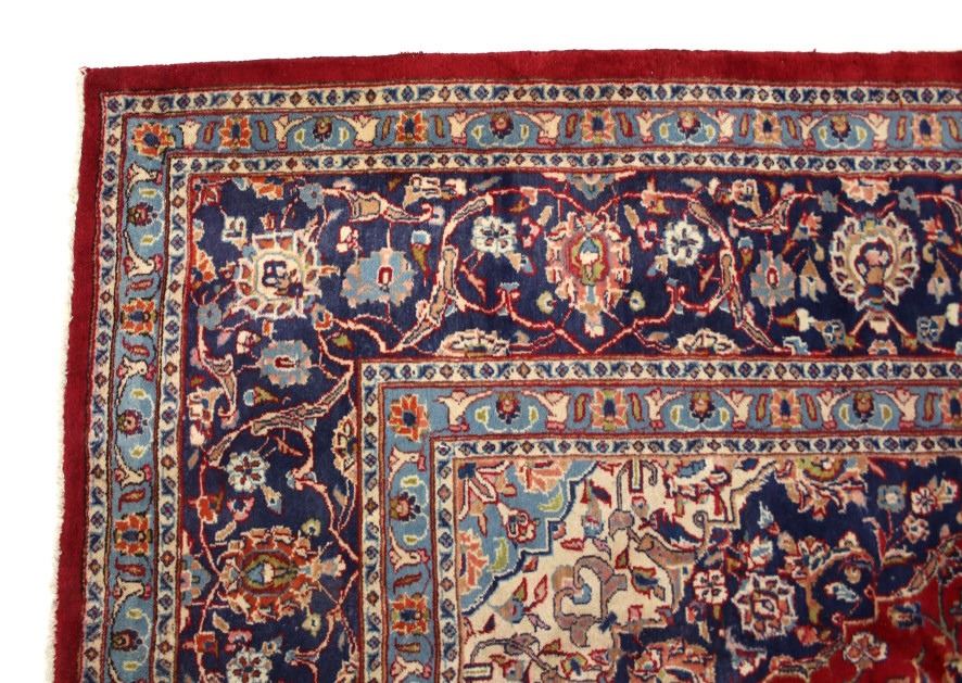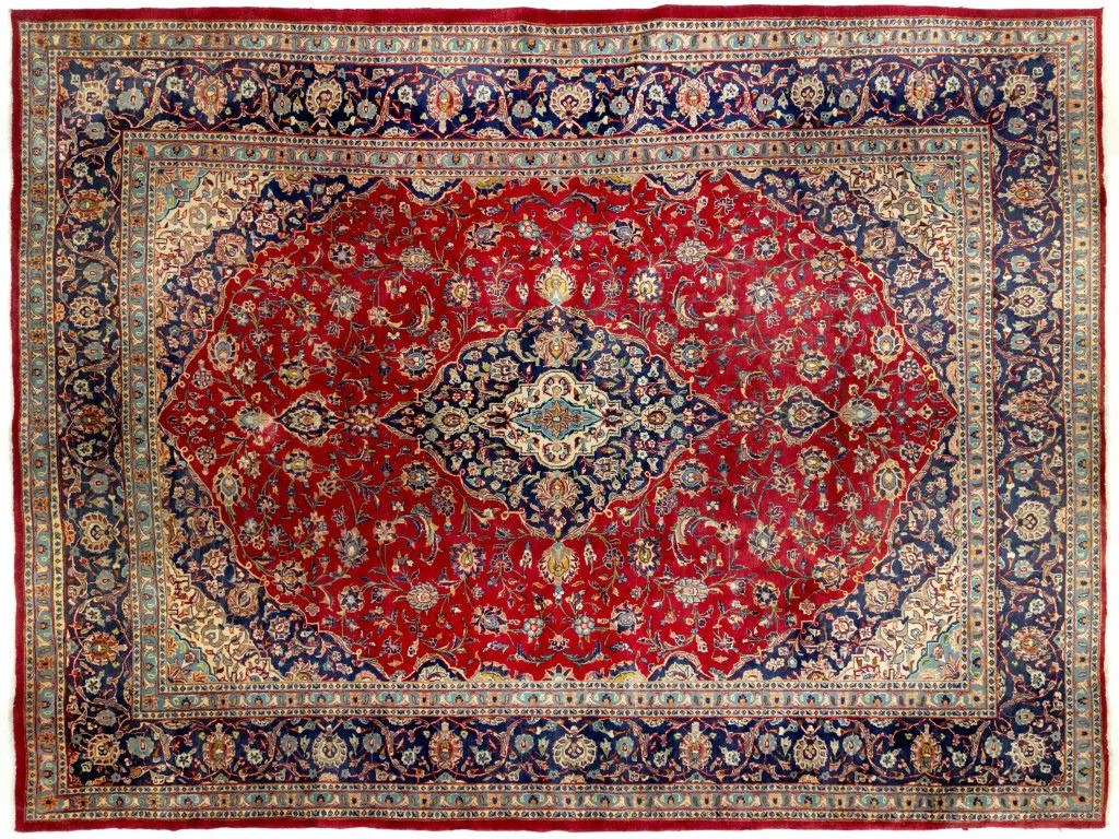 Featured in this lot is this Iranian Persian Sarouk Tabriz hand knotted carpet circa mid 1900's. The carpet features a wonderfully and professionally crafted 50% wool and 50% construction that shows a hand knotted pile woven design. The carpet features its original tag on the underside of the carpet and reads as follows: No. 78 - Size 395 x 290 - Made in Iran - Hand Knotted 50% Wool 50% Cotton. The carpet features a large red field and a smaller geometric medallion in the center with floral decoration to the triple border to the carpet and features a shorter fringe on both sides of the carpet. Sarouk rugs have been produced for much of the twentieth century. The early successes of the Sarouk rug are largely owed to the American market. From the 1910s to 1950s, the "American Sarouk", also known as the "painted Sarouk", was produced. Many merchants bought the old and antique Persian rugs from all over Iran and exported them to other countries. They used the city of Tabriz in northwest Iran to export these antiques to Europe via Erzurum in Turkey. Some merchants also used the southern ports on the Persian Gulf to export Persian rugs to the US by ship. The condition of this large rug is good with no obvious signs of damage and shows good overall condition. The measurements of this large rug is 156" x 115".