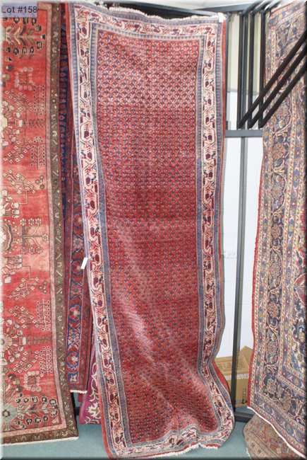 Iranian wool runner with overall geometric center surrounded by multiple borders 43" X 124"