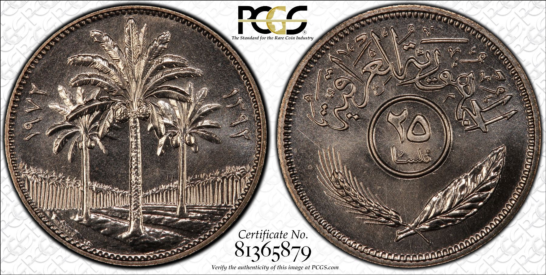 Iraq 1972 25 Fils KM-127 PCGS SPECIMEN SP68 *ONLY 1 GRADED* Kings Norton Mint Collection