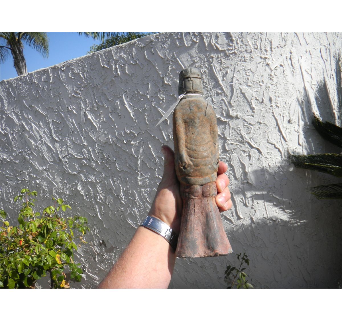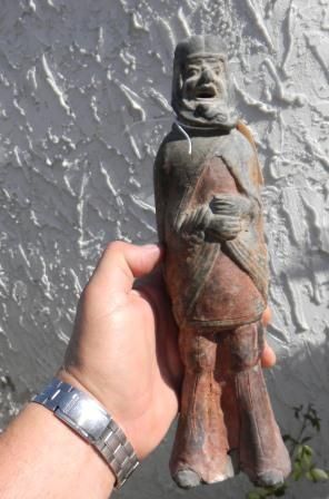 Ceramic Figure from Iraq painted with red and black. Circa 1700. Item measures 12 by 3 inches. Shipping $12.00. Measures 12x3x3. Condition is poor has been glued.