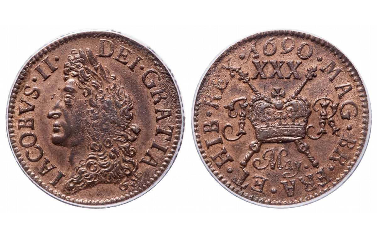 Ireland. 1/2 Crown. 1690-MAY. PCGS graded Choice Uncirculated-63. Gun Money KM-101.