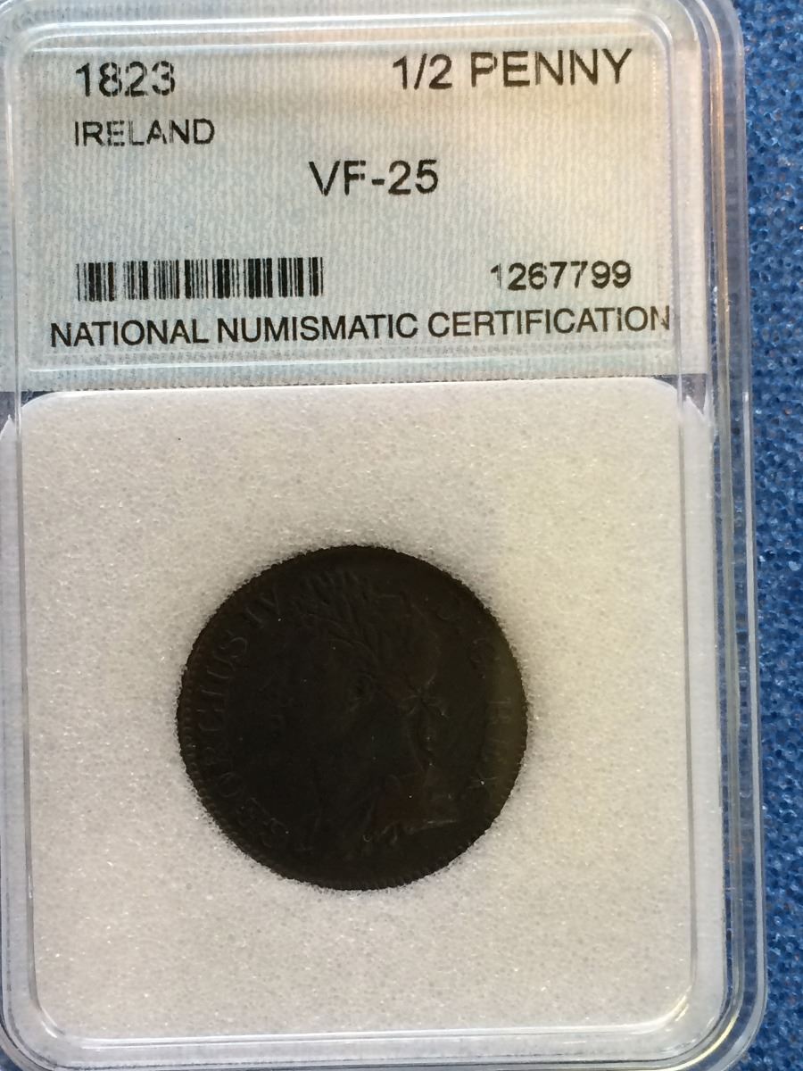 Ireland 1/2 Penny 1823; NNC certified VF-25.