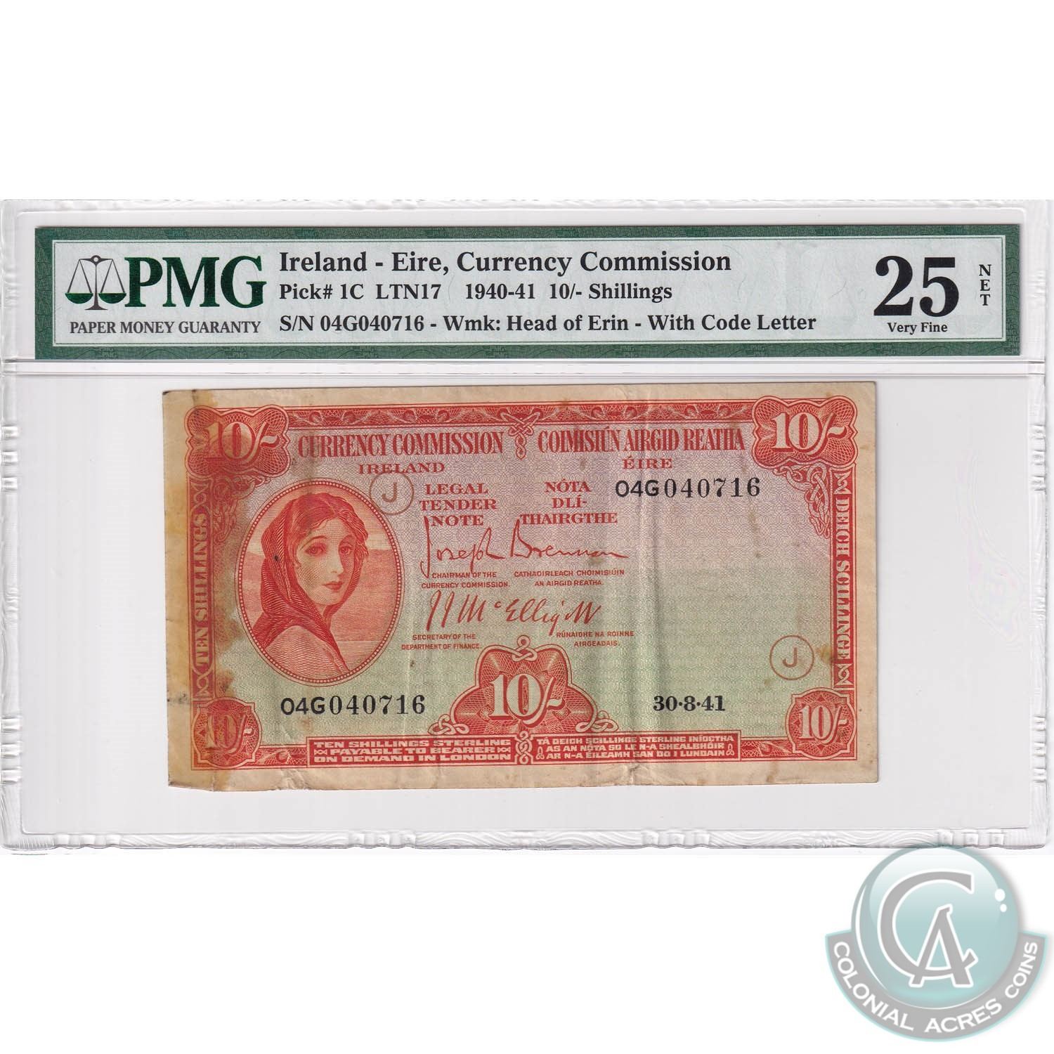 Ireland: 1941-41 10-Shillings, Pick #1C LTN17, Currency Commission, Head of Erin, PMG Certified VF-25 NET. 04G040716.