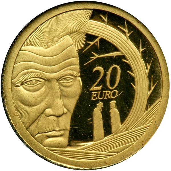 Ireland. 20 Euro, 2006. KM-46. 1.24 grams. Samuel Beckett. In original case with certificate. Choice Brilliant Proof.