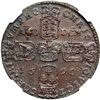 Ireland. Crown, 1690. S.6578. James II, 1685-1691. So called 'Gunmoney' coinage. King on horse left. Reverse: Center crown with four shields in cross form. NGC graded MS-63.