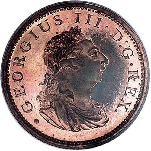 <B>George III Penny 1805, </B></I>Ex: Pittman Collection, Spink 6620, KM148.1, Proof 65 Red PCGS, fully brilliant reverse with some toning in the right obverse field. A flashy coin with an important pedigree.<BR><BR><b>Shipping:</b> Coins & Currency (<a target="_blank" href="http://www.heritageauctions.com/common/shipping.php">view shipping information</a>)