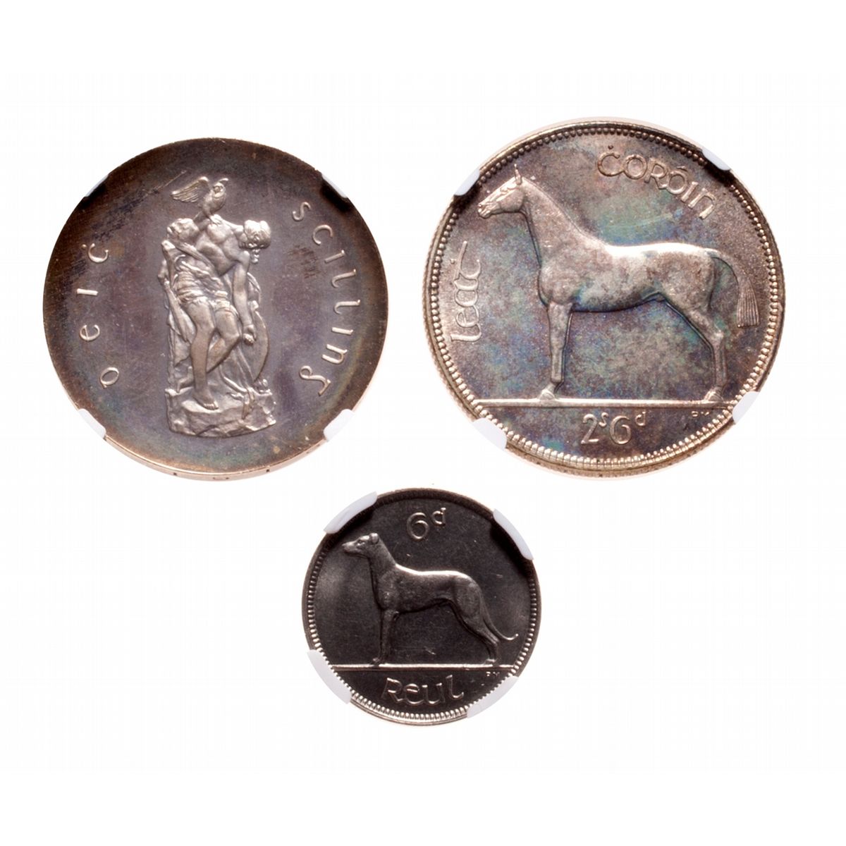 Ireland. Lot of three (3) PCGS graded Proof coins, including: 6 Pence 1928, NGC PR-65; 10 Shillings 1966, Easter Uprising, NGC PR-66; 1/2 Crown 1928, NGC PR-65.