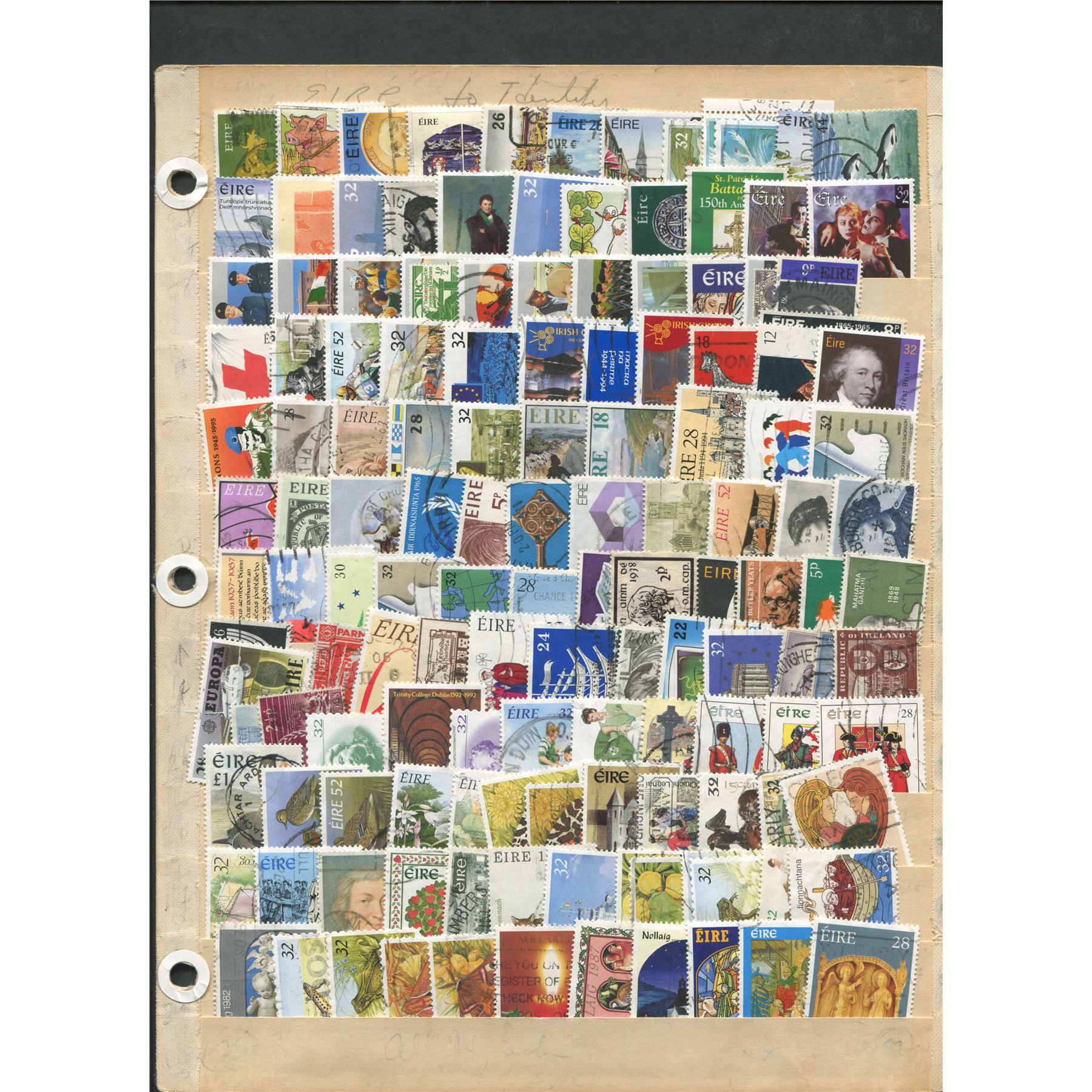 Ireland stamp collection. This collection contains over 230 stamps on two sheets. Please see photos.