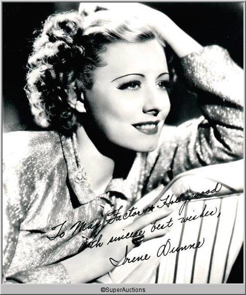 Irene Dunne from The Max Factor Collection / (1) 8 x 10 Autographed Nitrate Negative / "To Max Factor * Hollywood With Sincere Best Wishes Irene Dunne"