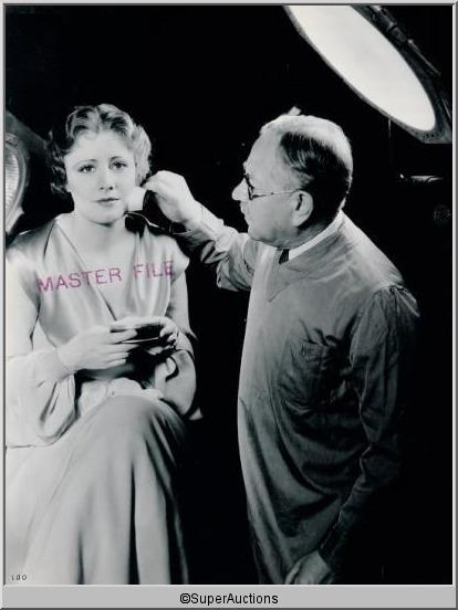 Irene Dunne from The Max Factor Collection / (1) 8 x 10 Negative No. 100 of Irene Dunne Posing while Max Factor Uses Make-Up Brush / (1) 8 x 10 Black & White Photograph / (1) Photocopy of July 9, 1933 Sioux City, Iowa Journal Newspaper Article