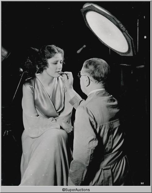 Irene Dunne from The Max Factor Collection / (1) 8 x 10 Nitrate Negative No. 95 of Irene Dunne Seated On-Set while Max Factor Applies Lipstick Make-Up / (1) 7 1/2 x 9 1/2 Black & White Photograph / (1) 8 x 10 Black & White Photograph