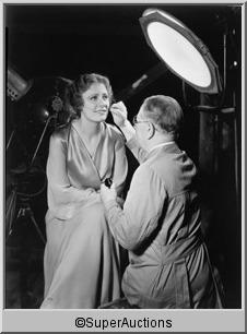 Irene Dunne from The Max Factor Collection / (1) 8 x 10 Nitrate Negative No. 96 of Irene Dunne Posing while Max Factor Applies Rouge Make-Up On-Set