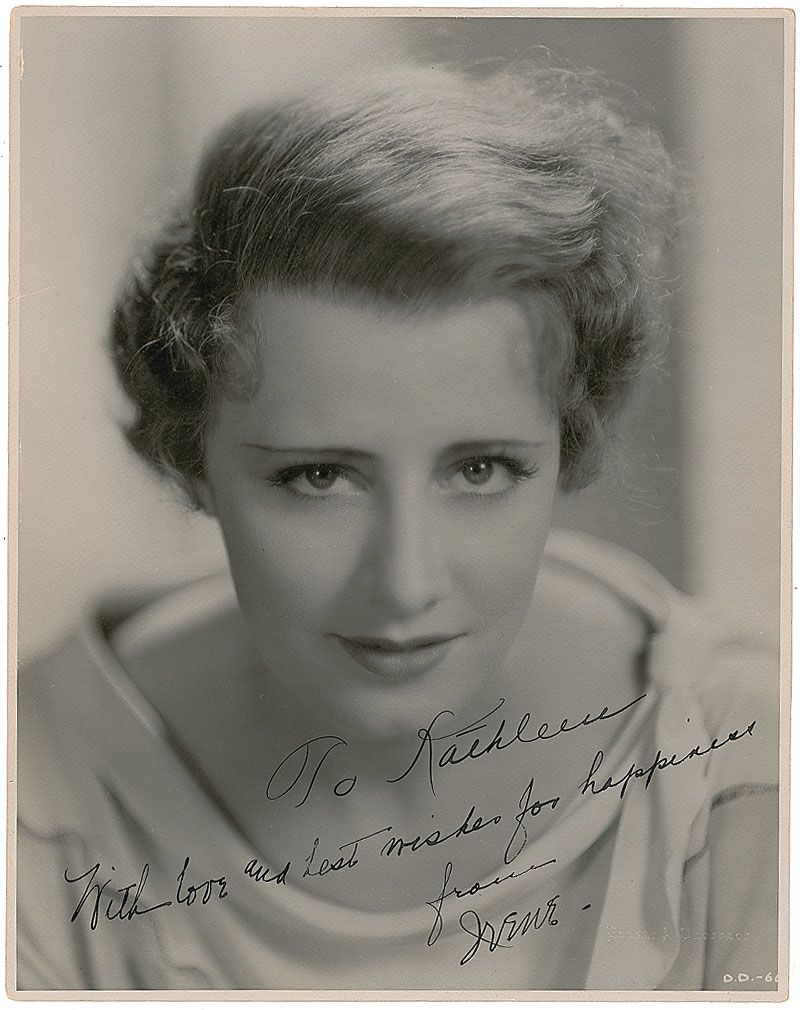 Vintage matte-finish 10.75 x 13.5 Bachrach photo, signed and inscribed in fountain pen “To Kathleen, with love and best wishes for happiness from Irene.” In fine condition, with a small tear to border, not detracting from the overall lovely appearance of the image.