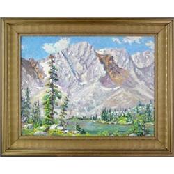 Irene Fowler (1884-1967) (Colorado) Oil on Board, "Mirror Lake, Medicine Bow Peak, WY," 18" x 24", signed lower right, circa 1930, Est $1,800 - $2,400