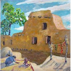 Irene Fowler (1884-1967) (Colorado) Oil on Board, "Pueblo Family," 24" x 24", signed lower right, Est $1,500 - $2,000