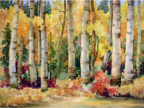 [Canadian ASA 20th century] ASPENS IN SEPTEMBER Watercolour on paper 21.25 x 28 ins. Signed & titled
